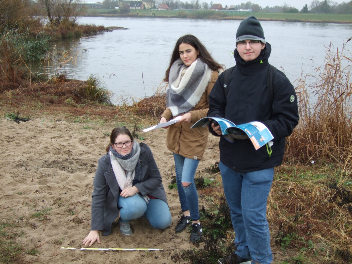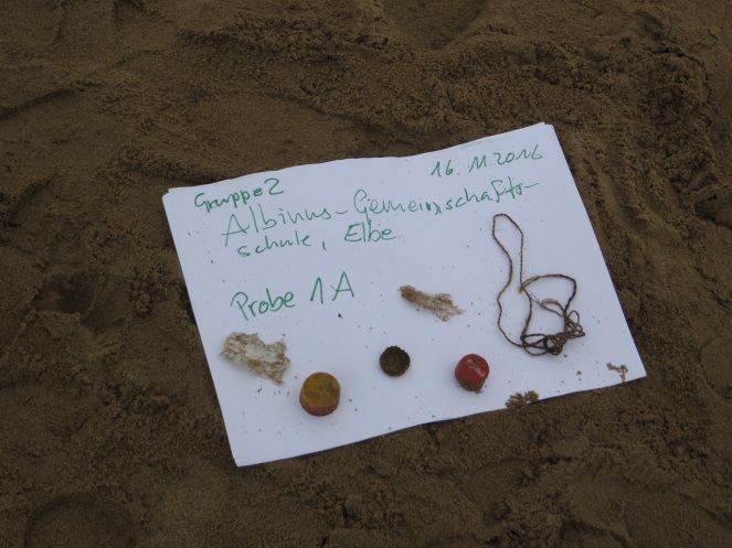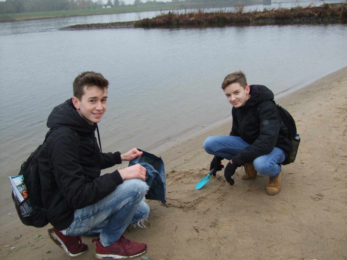 Die beiden Klassen nahmen an zwei verschiedenen Stellen an der Elbe ihre Untersuchungen vor. Mit einem Mikroplastiknetz filterten sie treibendes Mikroplastik aus dem Flusswasser heraus. Durch die Entnahme von Sandproben und der späteren Untersuchung mithilfe eines Mikrosiebes, wurden ebenfalls Mikroplastikpartikel gefunden. Beim anschließenden, großflächigen Spülsaummonitoring (1,5ha wurden untersucht) fanden die sehr engagierten Schülerinnen und Schüler zahlreiche achtlos weggeworfene Plastikmüllarten.